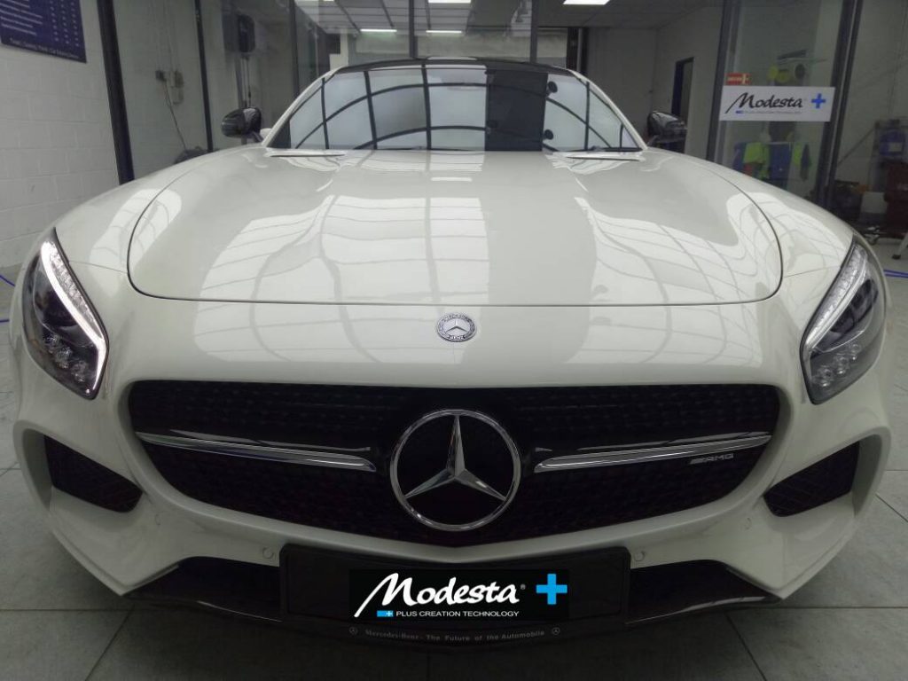 The Modesta Flagship. Based on a three-dimensional molecular frame it forms a highly durable clear glass coat on the paint and produces an unique "candy-like" gloss. Other qualities include strong water-repelling effects, durability of up to 10 years and outstanding protection against all kinds of contamination and oxidation.★Nano-Titanium Glass Coating★