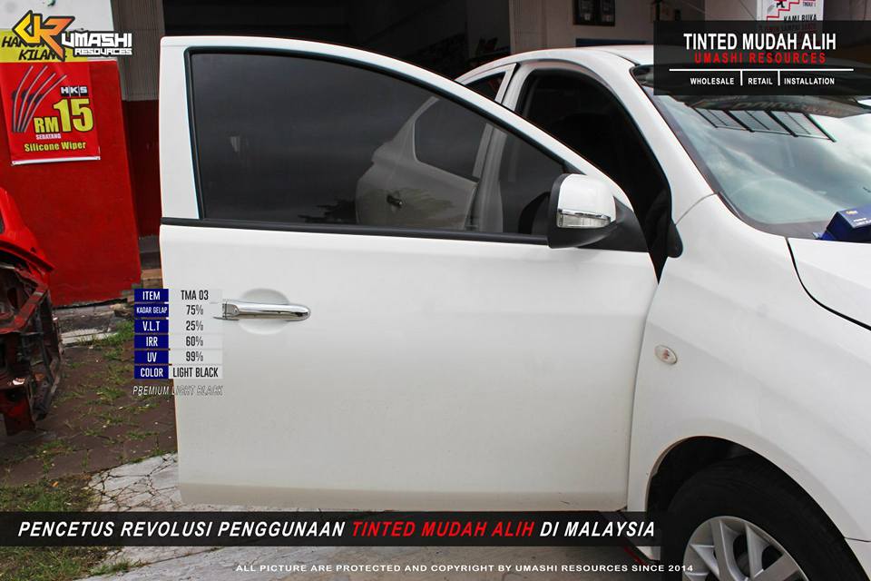 Apa itu Tinted Mudah Alih HQ - Umashi Resources?Umashi Resources (SA0327241-D) ditubuhkan pada 2014, merupakan sebuah syarikat bumiputera yang sentiasa komited dan berusaha untuk menjadi sebuah syarikat terkemuka dalam industri pembekal filem penghadang haba yang mengandungi anti-UV yang tinggi serta menawarkan khidmat pemasangan yang bertaraf proffesional. Ini menunjukkan kami sentiasa memberi layanan terbaik dalam membantu dan mengatasi masalah penggunaan tinted pada masa kini.Kami menggabungkan sekumpulan usahawan muda bumiputera yang berpengalaman bagi mengembangkan lagi perniagaan ini bersama-sama. Oleh sebab itu, kami di Umashi Resources sentiasa ingin membuka peluang kepada individu, mahupun organisasi kecil sederhana serta korporat besar dalam membantu mengembangkan dan mempromosikan penggunaan produk kami iaitu ‘Tinted Mudah Alih’ secara meluas supaya ia dapat bersaing setaraf dengan produk yang berada di pasaran pada masa kini.Penggunaan Tinted Mudah Alih merupakan satu produk baharu yang telah bertapak di Malaysia sejak tahun 2014 lagi. Kami di Umashi Resources merupakan ‘Pencetus Revolusi Penggunaan "Tinted Mudah Alih yang pertama di Malaysia". Revolusi penggunaan tinted mudah alih memberi manfaat kepada pengguna dari segi penggunaan serta kualiti produk itu sendiri. Hal ini kerana Tinted Mudah Alih dari Umashi Resources ini telah dibangunkan dengan pelbagai ciri-ciri dan konsep yang mempunyai keistimewaan serta feadah yang tersendiri. Tinted Mudah Alih - Umashi Resources ini mempunyai lapan variasi warna pilihan, antaranya, Premium Dark Black, Premium Black, Premium Light Black, Titanium Cromax, Titanium Light Cromax, Platinum Light Green, Crystal Light Blue dan Premium Light Gray.Kelapan-lapan warna ini mempunyai Ketahanan Sinaran Ultra Unggu (UV), Menahan Haba (IIR) dan Kadar Ketahanan Cahaya (VLT) yang tersendiri malah ia mempunyai tahap perlindungan yang tinggi dari segi ketahanan panas, anti sinar UV dan kadar penembusan cahaya. Dengan ciri-ciri serta kelebihan produk Tinted Mudah Alih dari Umashi Resources ini, ia dapat memberi manfaat serta kesan positif kepada pengguna. Terutamanya dengan harga mampu milik serendah RM100 sudah pasti memberi kepuasan kepada pengguna.Seperti mana yang kita tahu pengunaan cermin gelap dalam kadar gelap yang tinggi dapat membantu menghalang daripada sinar UV terus masuk ke dalam kenderaan anda. Sudah pasti sinar UV akan memberi kesan negatif kepada pengguna serta objek-objek di dalam kenderaan anda menjadi rosak, bahkan kulit juga akan mengalami masalah. Apabila tahap kepanasan daripada matahari yang menghasilkan sinar UV yang tinggi kepada tubuh manusia, ia memberi kesan negatif yang sangat serius seperti kanser kulit, ‘cataracts’, malah sinar UV boleh menyebabkan kulit terbakar, berkedut, serta menyebabkan tompokan kulit bersisik dan berkerak dan beberapa lagi penyakit lain yang disebabkan oleh sinar UV.Rentetan daripada masalah tersebut, kami di Umashi Resources mempunyai jalan penyelesaian serta kaedah yang terbaik untuk mengatasi masalah anda. Penggunaan Tinted Mudah Alih - Umashi Resources yang mempunyai anti-UV sehingga 99% serta bahan yang diimport khas daripada Taiwan dengan ketebalan 6mm, ia sangat sesuai digunakan dengan keadaan cuaca di Malaysia. Ia merupakan satu langkah perlindungan diri kepada pengguna yang sering terdedah kepada sinar UV terutamanya pengguna kenderaan serta cermin bangunan.Tinted Mudah Alih ini sangat sesuai dijadikan ‘second layer’ cermin kenderaan anda untuk melindungi dari terkena panahan sinaran UV yang tinggi. Selain itu, Tinted Mudah Alih mempunyai fungsi yang istimewa seperti ia boleh boleh dipasang dan dibuka berulang kali tanpa had, dan tidak memberi kerosakan kepada tinted tersebut, malah ia diperbuat daripada bahan yang berkualiti tinggi yang dapat menjanjikan pulangan kesan positif kepada pengguna. Bukan itu sahaja, Tinted Mudah Alih ini berkonsepkan Do It Yourself (DIY). Ini bermaksud sesiapa sahaja boleh melakukannya tanpa sebarang masalah. Hal ini kerana kaedah pemasangan tinted ini tidak mengunakan GAM dan ia tidak memerlukan glu panas untuk membuat pemasangan. Malah ia mudah untuk dipasang dan tidak memakan kos yang tinggi.Pemasangan Tinted Mudah Alih ini hanya memerlukan air sabun atau syampu bagi tujuan pemasangan yang sempurna. Pemasangan produk ini sangat mudah dan tiddak memakan masa yang banyak. Jadi, anda tidak perlu membuang masa untuk ke kedai bagi pemasangan Tinted Mudah Alih ini. Dengan kelebihan ini dapat menunjukkan bahawa Tinted Mudah Alih ini bukan sahaja mempunyai kualiti dari segi anti-UV malah kaedah pemasangan yang mudah.Terima Kasih.